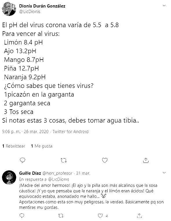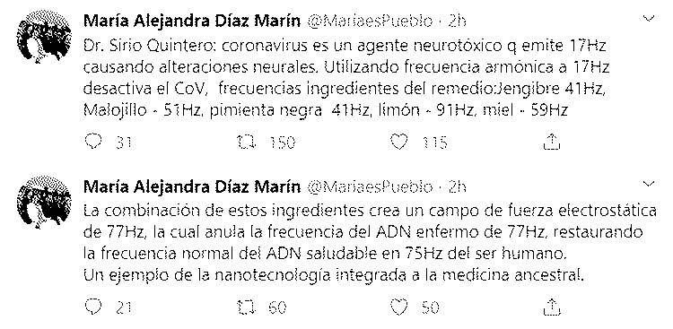 Lamentablemente (algunos dirán por suerte) eso les va a jugar en contra pero por su salud, aun sin antenas 5G (no las hay en la mayoría del mundo infectado) o consumiendo lejía como medicamento (un ex médico estafador conocido en España promueve eso) el virus ni se va a enterar de sus paranoias o delirios.