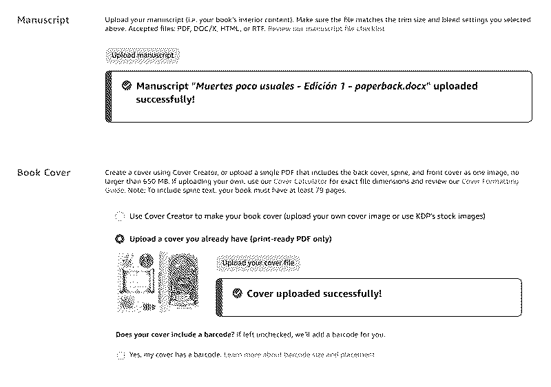 Para el tapa blanda los tamaños de la portada son otros y el ISBN también, así que hay que subir otro Word y otro PDF un poco más "angosto".