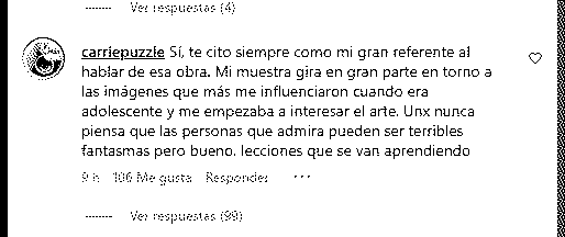 Esto le comentó a Ciruelo en su posteo 🤷 y claramente habla más de ella que nadie ¿"Fantasma"? ¿Al artista al cual le plagiaste una obra? Ni siquiera Nik se atreve a tanto, el gran plagiador argentino sólo se escuda en jamás contestar ninguna crítica, "Carrie" en cambio no pudo aguantarse y pretendió subirse a un pedestal moral que... bueno, no tiene y sigue dejándola muy, muy pequeña.