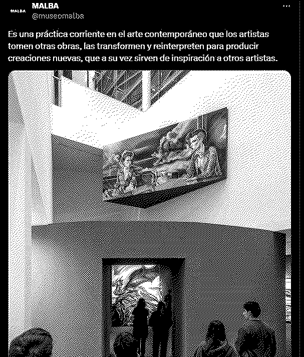 Qué cosa es el plagio, y esta vez no hablamos de Nik, la curiosidad es esta: una "artista" plagia descaradamente a Ciruelo Cabral, gran artista con poco reconocimiento en los ambientes "elitistas" y éste encuentra el plagio colgado en el MALBA ¿Qué hace? se saca una foto con el plagio y la sube a Instagram junto al original, nada más.
