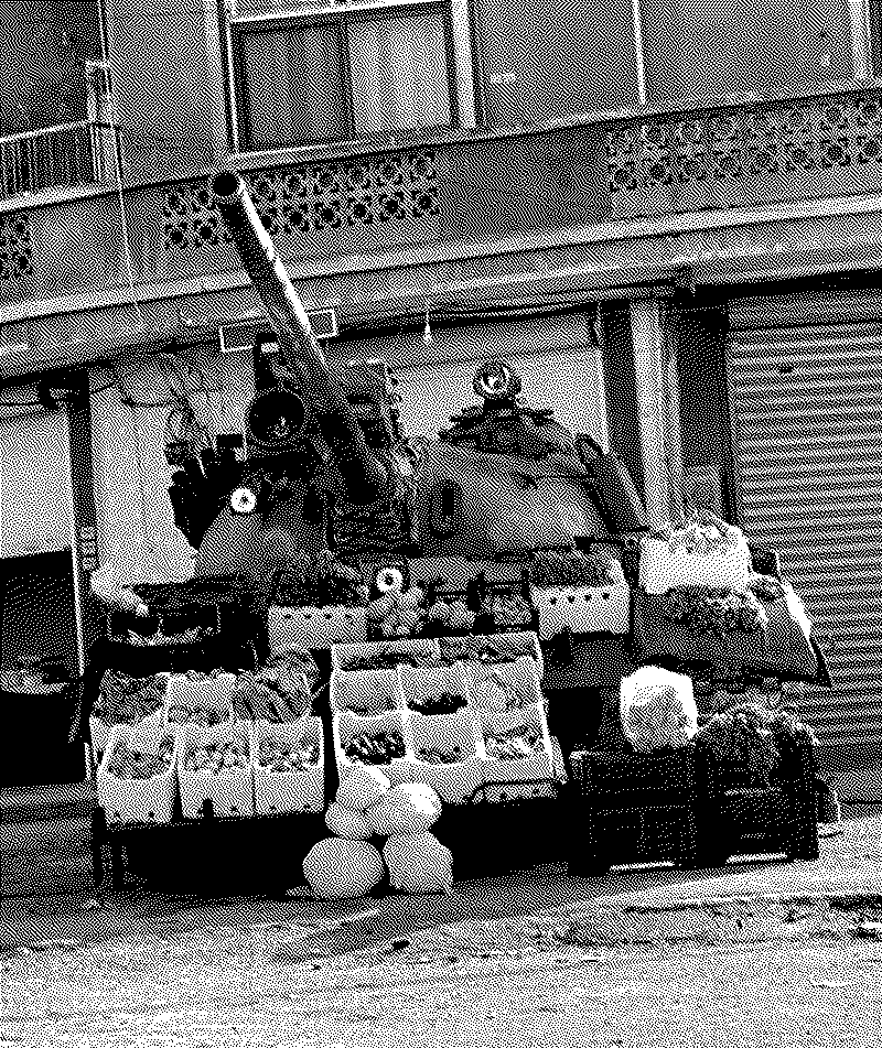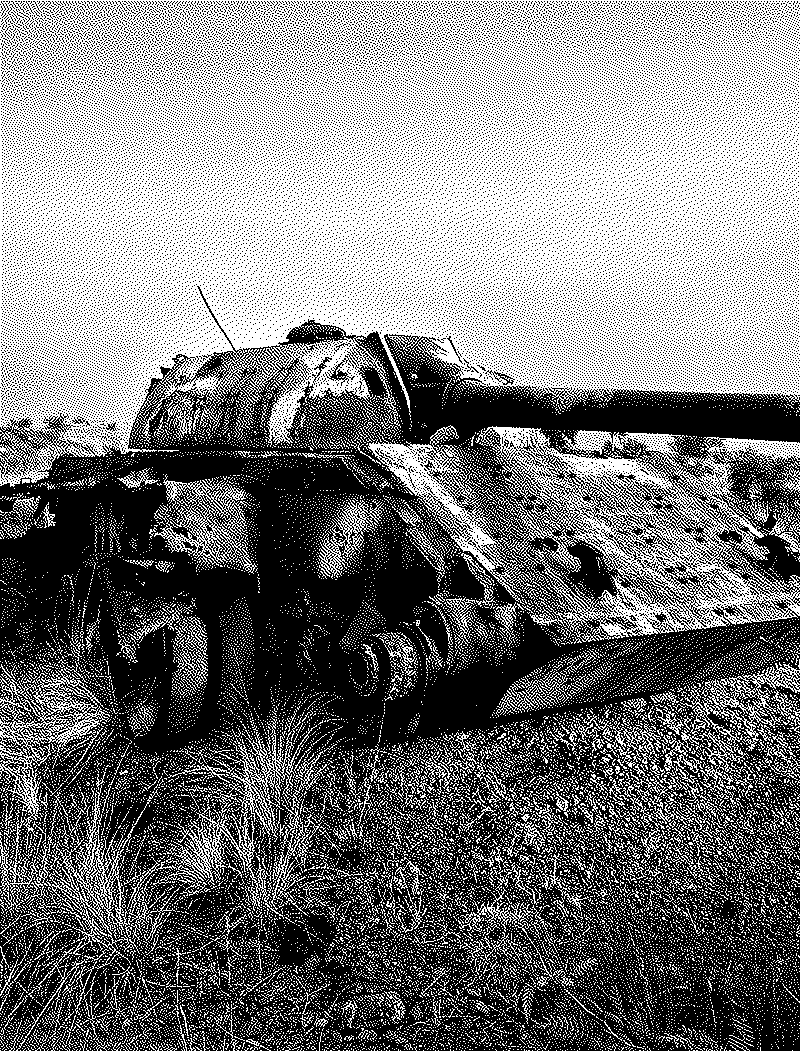 Siguen apareciendo fotos de tanques en estado paupérrimo, abandonados, oxidados, vencidos, descabezados. Y a mi me gusta ese contraste entre la máquina furiosa asesina y su costado débil, el abandono en el campo de batalla, el verde que se le sube y lo va conquistando todo.
