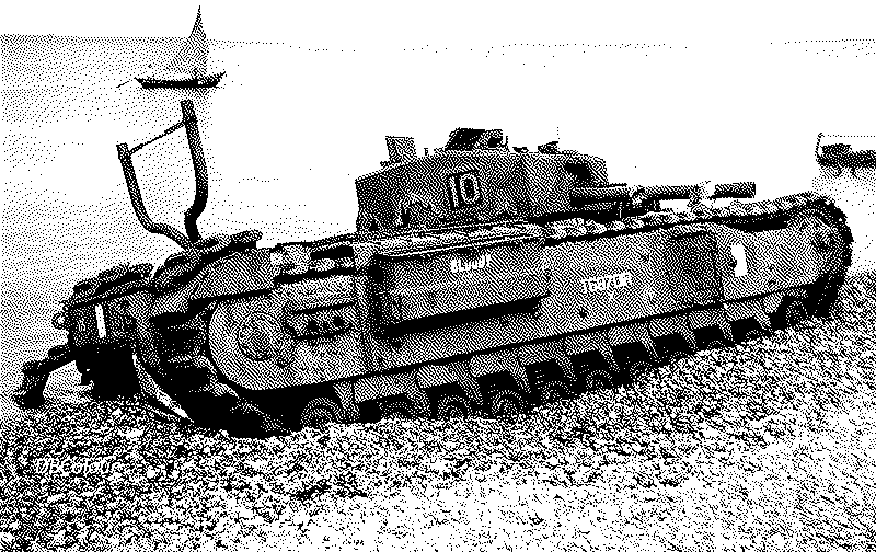 Imagen coloreada de uno de los Churchill Tank Mk III canadienses que habían desembarcado en Dieppe, 19 de Agosto de 1942