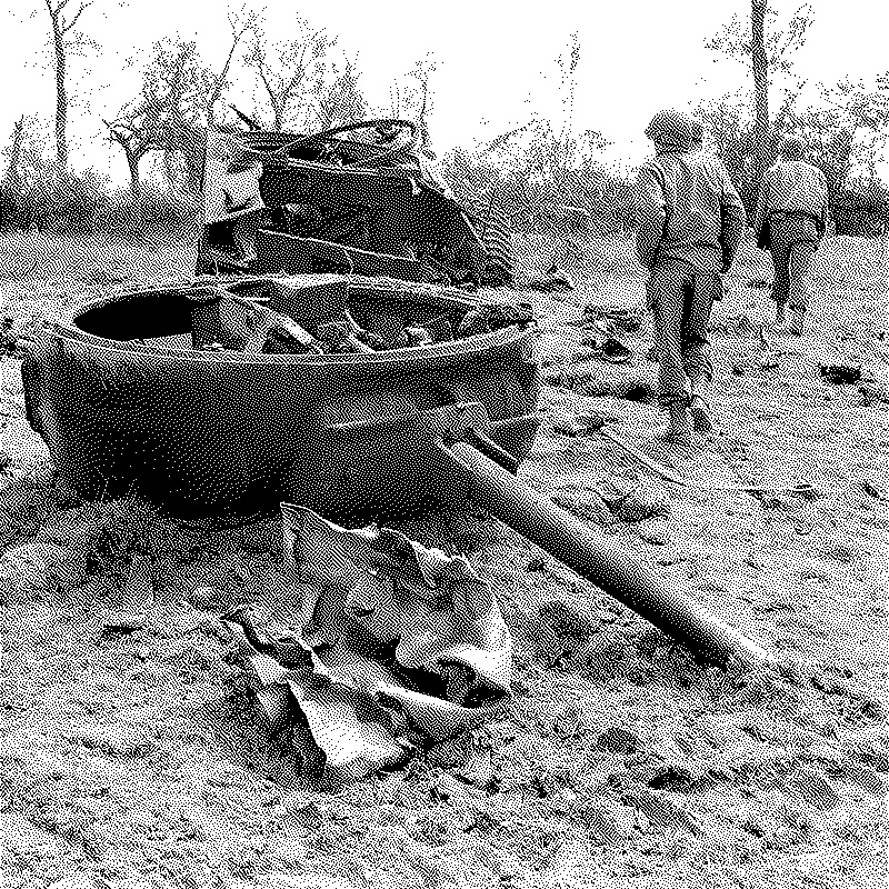 M4 Sherman completamente aniquilado cerca de St. Lo, Normandía, Francia, 1944