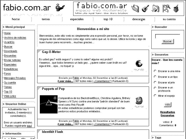 Si, comencé con el blog en 2002, podría haber sido antes, pero no tenía dinero. Era pobre y hacía páginas web por encargo ya en 1998, cuando registré el dominio estando en la facultad. Cómo me putearon los otros Fabios!