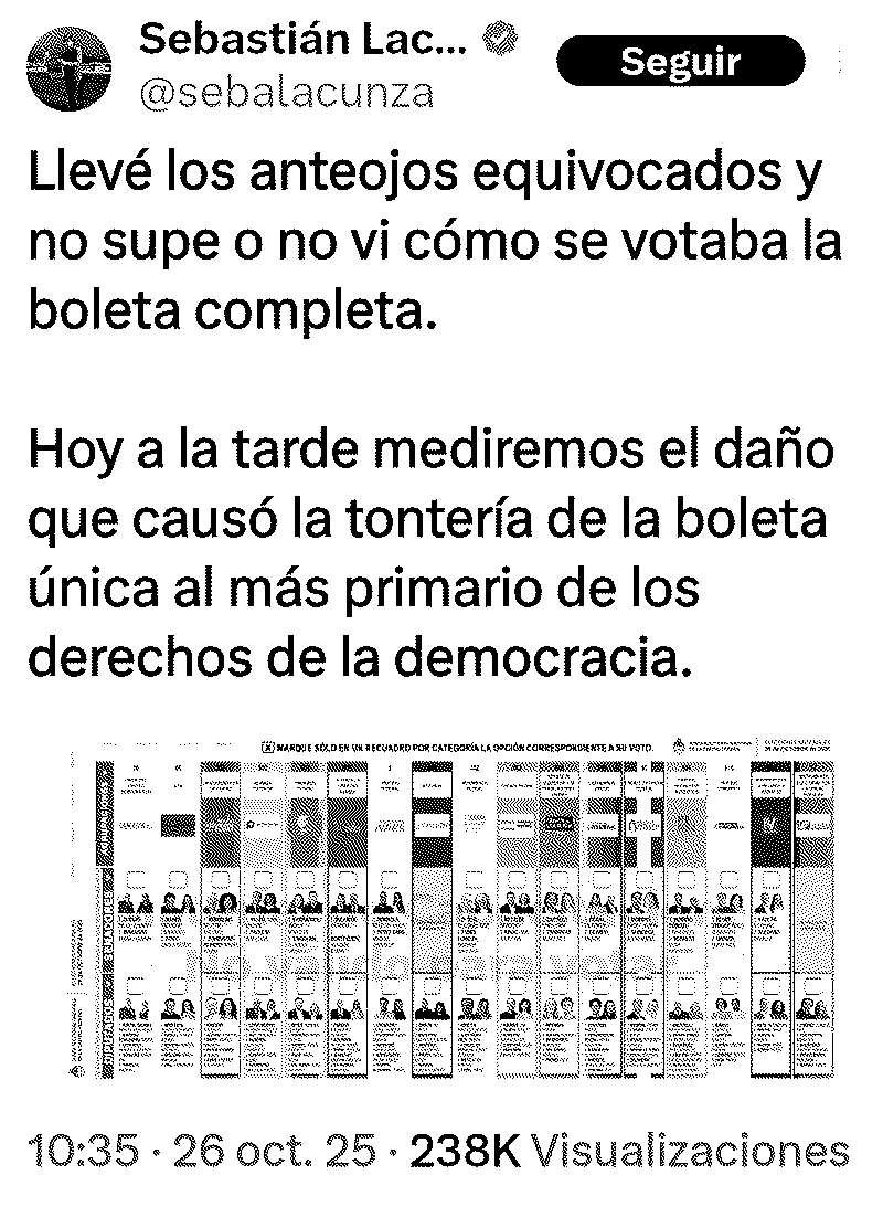 Tipografía muy pequeña en los nombres de los candidatos Tamaño pequeño para que entre todo Los colores de los partidos no ayudan, algunos parecían más importantes que otros Los nombres de las agrupaciones y alianzas han roto el esquema partidario nacional (no es culpa de la BUP sino que se manifiesta en su diseño) No hay razón lógica para que la BUP no pudiera ser más larga/grande, con 17 agrupaciones distintas podría haber tenido el doble de ancho ¿Incómoda? No es un problema, hacé una urna un poco más grande. No tenía un casillero para votar a un partido completo (discutible, prefiero que esté separada cada categoría como la actual)Aquellos que se tomaron el trabajo cívico de saber previamente qué iban a votar no iban a encontrar problema, los que al menos se molestaban en ver los enormes carteles informativos en todas las mesas de todas las escuelas, tampoco, el pelotudo que llegó al domingo sin saber qué candidatos se presentaban ni qué se votaba, que se joda. A esos no puedo defenderlos 😁
