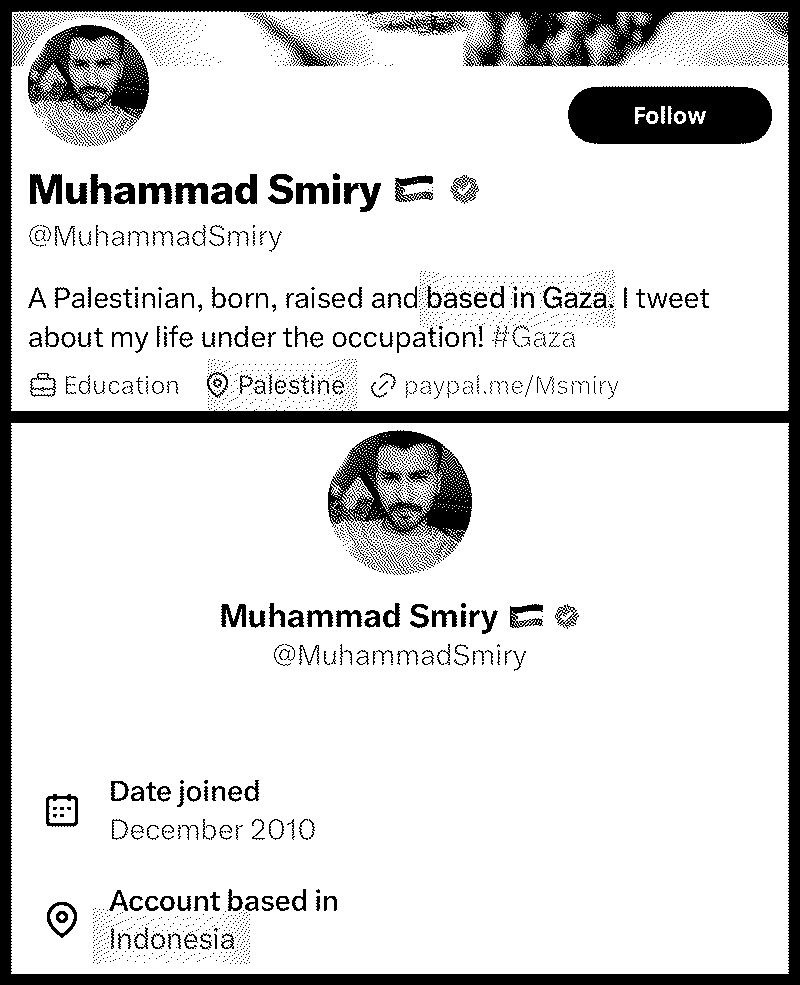 Lo interesante del caso de hoy es poder ver las evidencias de una forma extraordinaria. La plataforma antes conocida como Twitter (actualmente X por culpa de su dueño Elon Musk) habilitó una función durante el fin de semana que permite ver desde dónde realmente está publicando el contenido una cuenta.