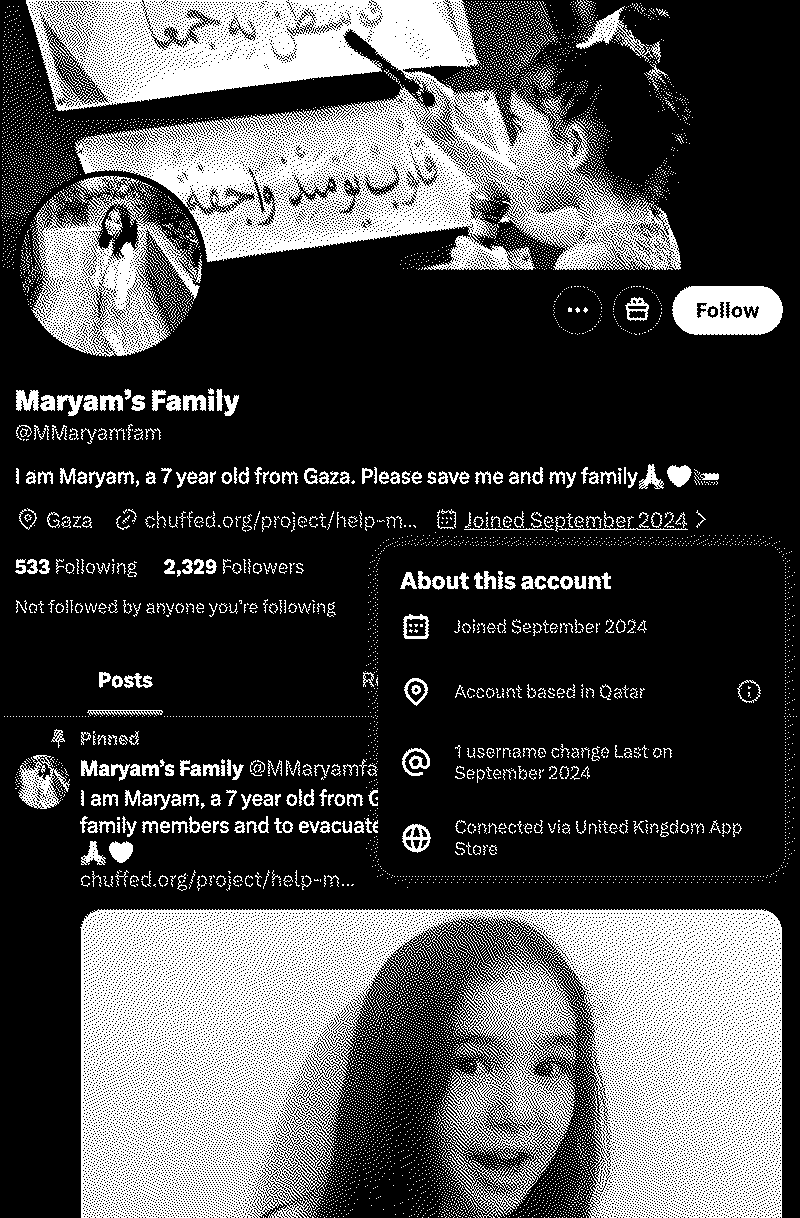 La estafa palestina tiene puntos altos como "Maryam" quien dice ser una niñita de 7 años desde Gaza, que más bien es desde Qatar y Reino Unido 😋