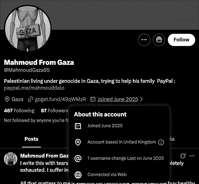 Maryam puede llegar a existir o simplemente ser generada por AI como sucede con muchas de estas cuentas falopa que reciben millones de réplicas de "gente consternada por su sufrimiento". Muchas veces los amplificadores son también cuentas falsas.