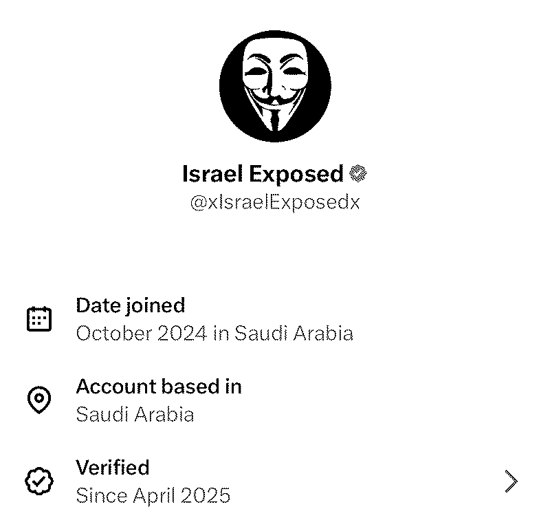 O mejor, la cuenta que "expone" a Israel casualmente no es ni Anonymous ni nada de eso, es de Arabia Saudita: