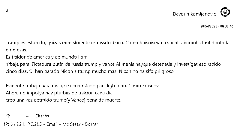Este es de hace una semana, los bots mal entrenados contestan así, ya no podemos confiar en que nadie sea un auténtico Hoygan, hoy podría ser un bot creado para generar discordia o un idiota tan idiota que es indistinguible de un robot.
