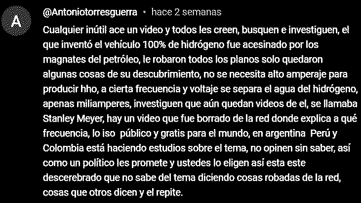 Desde ya que no podían faltar los del hidrógeno vehicular y sus estafas, en este caso todo el comentario es un refrito de lo de siempre, pero será inolvidable el "acecinado" o el "iso" y no son normas ISO, eso sí, no opinen sin saber (como él).