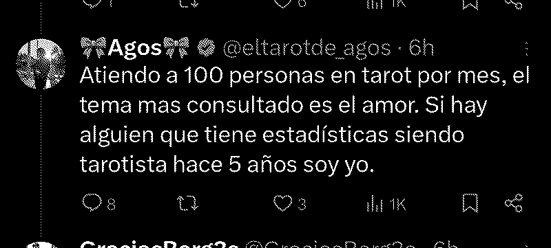 No soy de robar cosas de Twitter para los hoygan, pero este tuve que guardarlo, al parecer ser "tarotista" te da un muestreo perfecto de... la gente que va a una tarotista y le cree las idioteces que dice 😁🤌