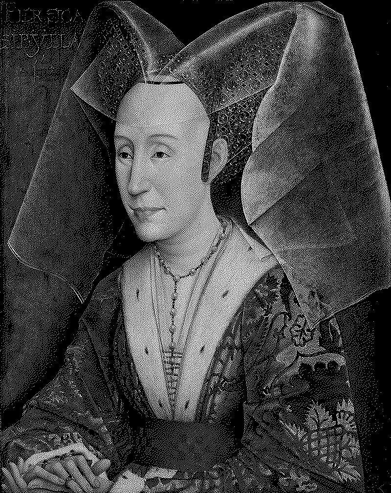 Para 1500 la cosa cambió, por un lado el tocado Gable se puso de moda, mucho más abajo que todo esto, pero por otro lado las damas italianas pasaron a usar un tul sencillo para cubrir hermosas trenzas ¡Se empezaba a mostrar el pelo!